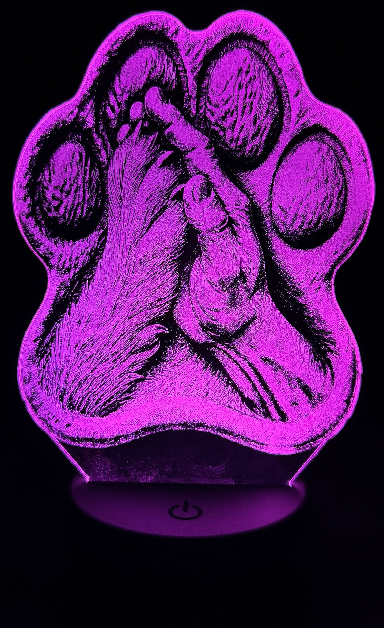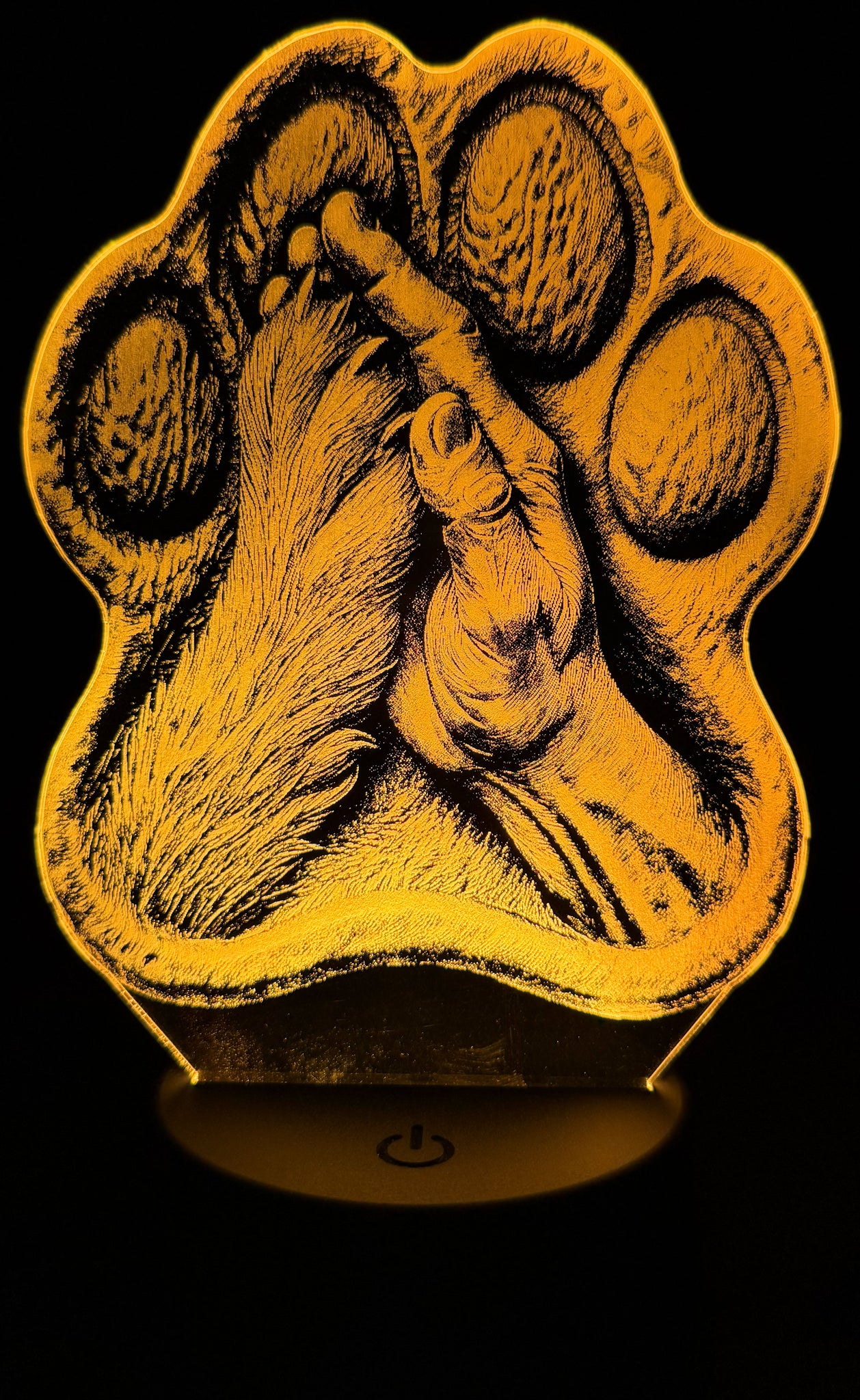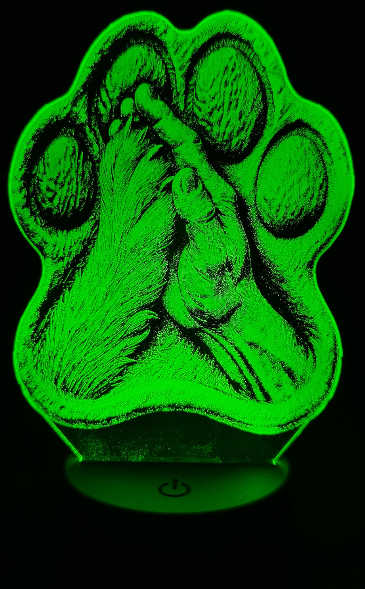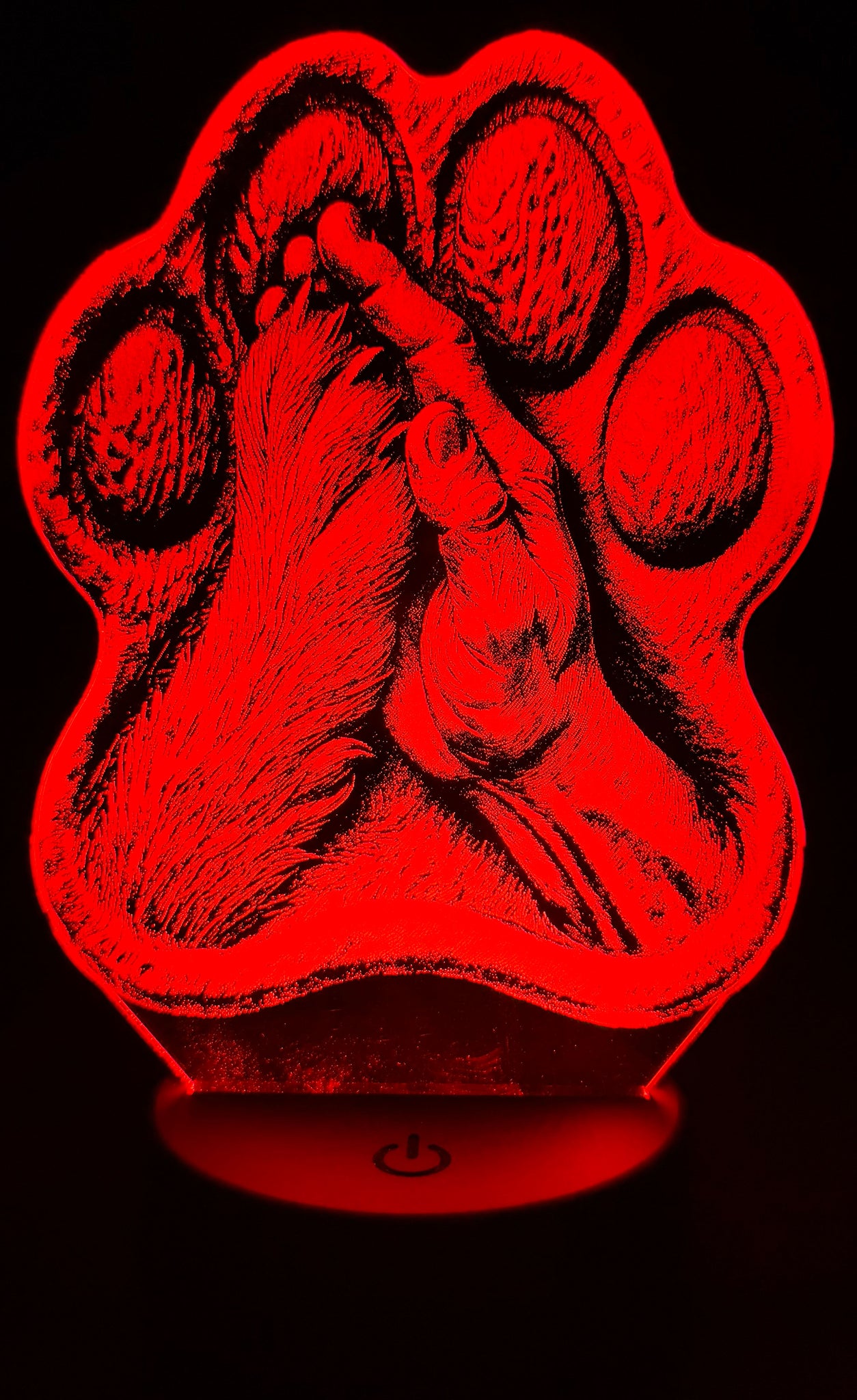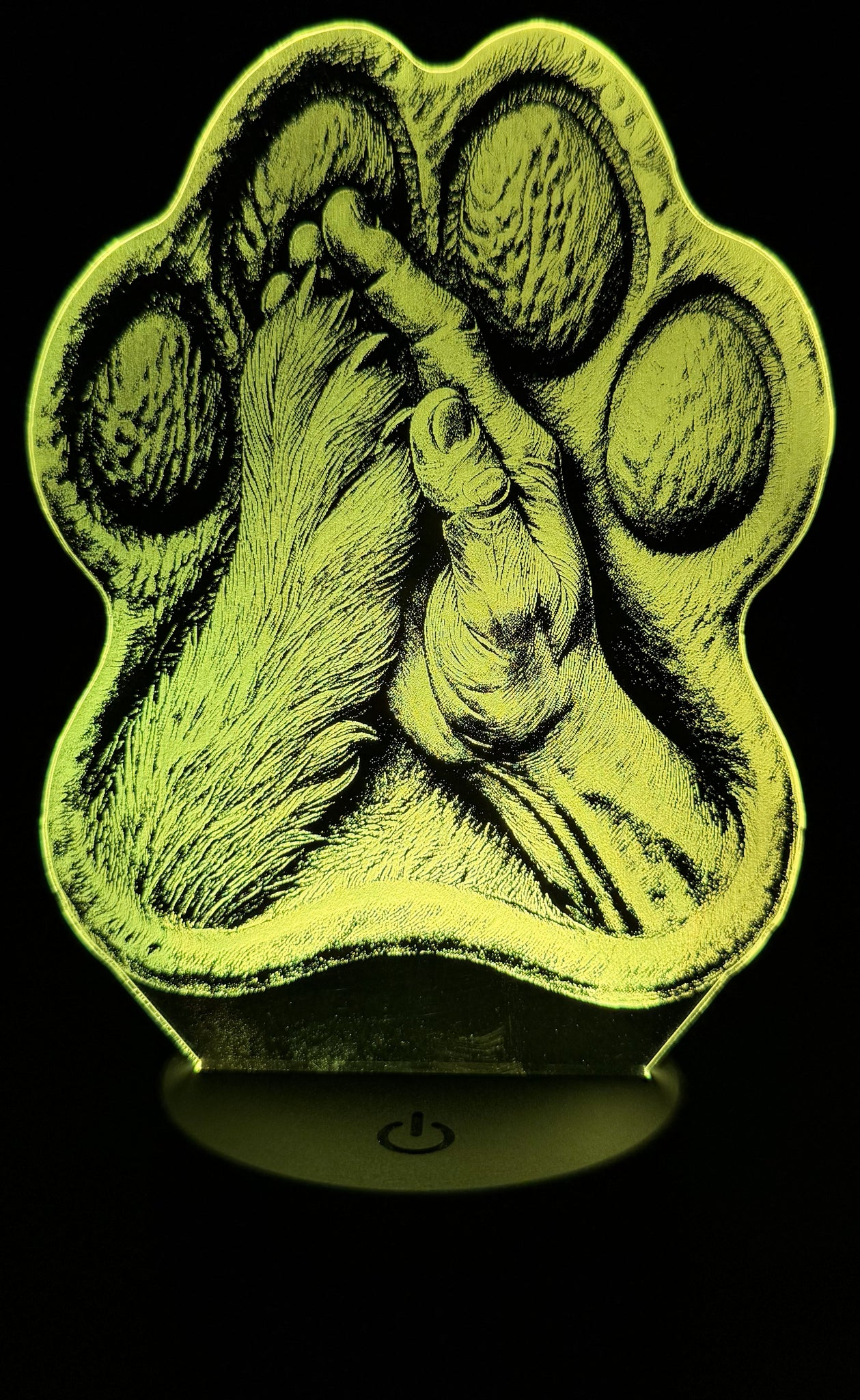 Hand and Paw Edge-Lit Acrylic Lamp – A Glowing Symbol of Loyalty and Love