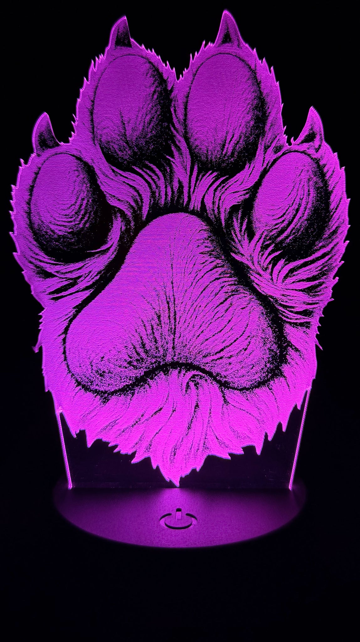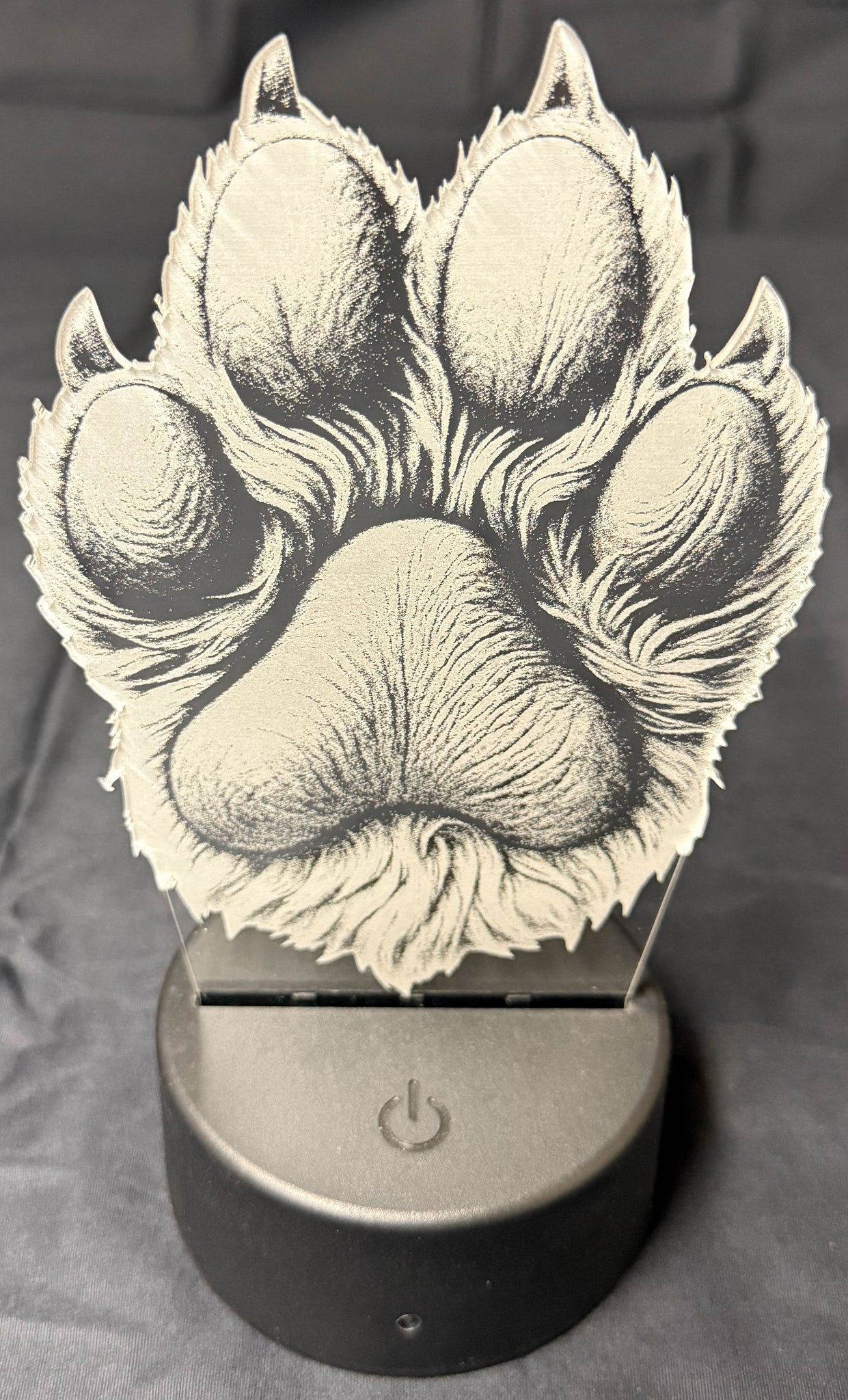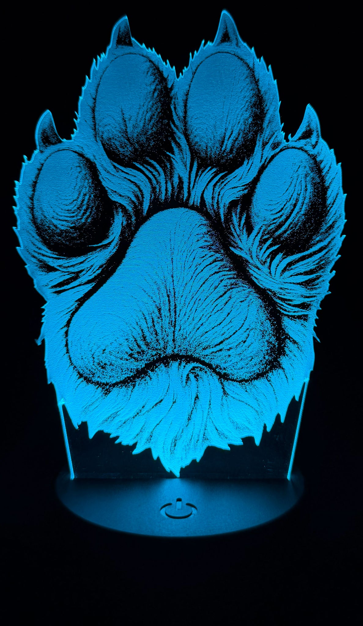 Honor the bond between human and pet with this beautifully etched edge-lit acrylic lamp featuring a lifelike paw print. Crafted with precision and illuminated by vibrant LED lighting, the design showcases fur texture and shading that evoke warmth, loyalty, and love. Whether it's a tribute to a beloved dog, a gift for a pet parent, or a cozy accent for your space, this glowing paw print brings heartfelt charm to any room.