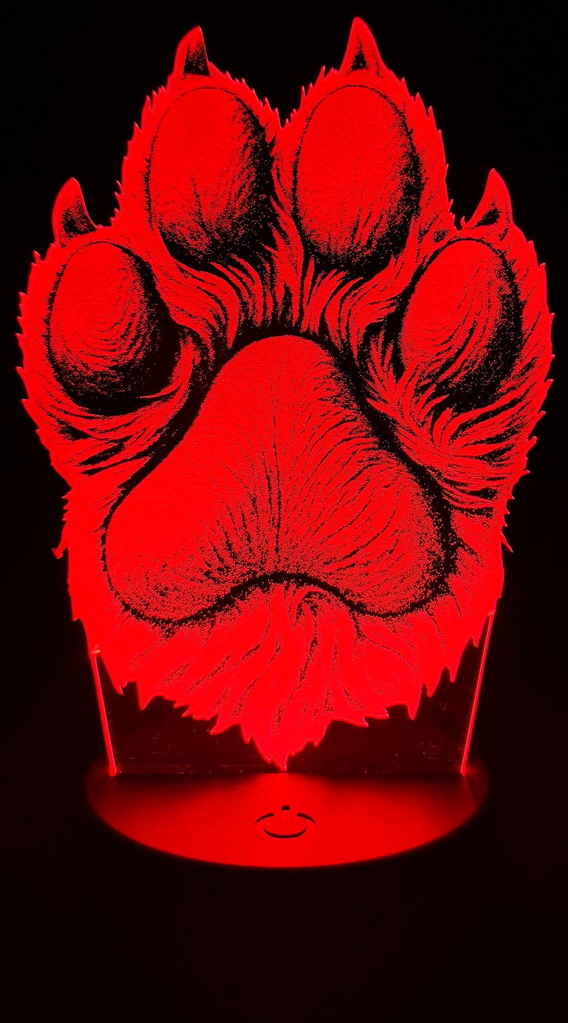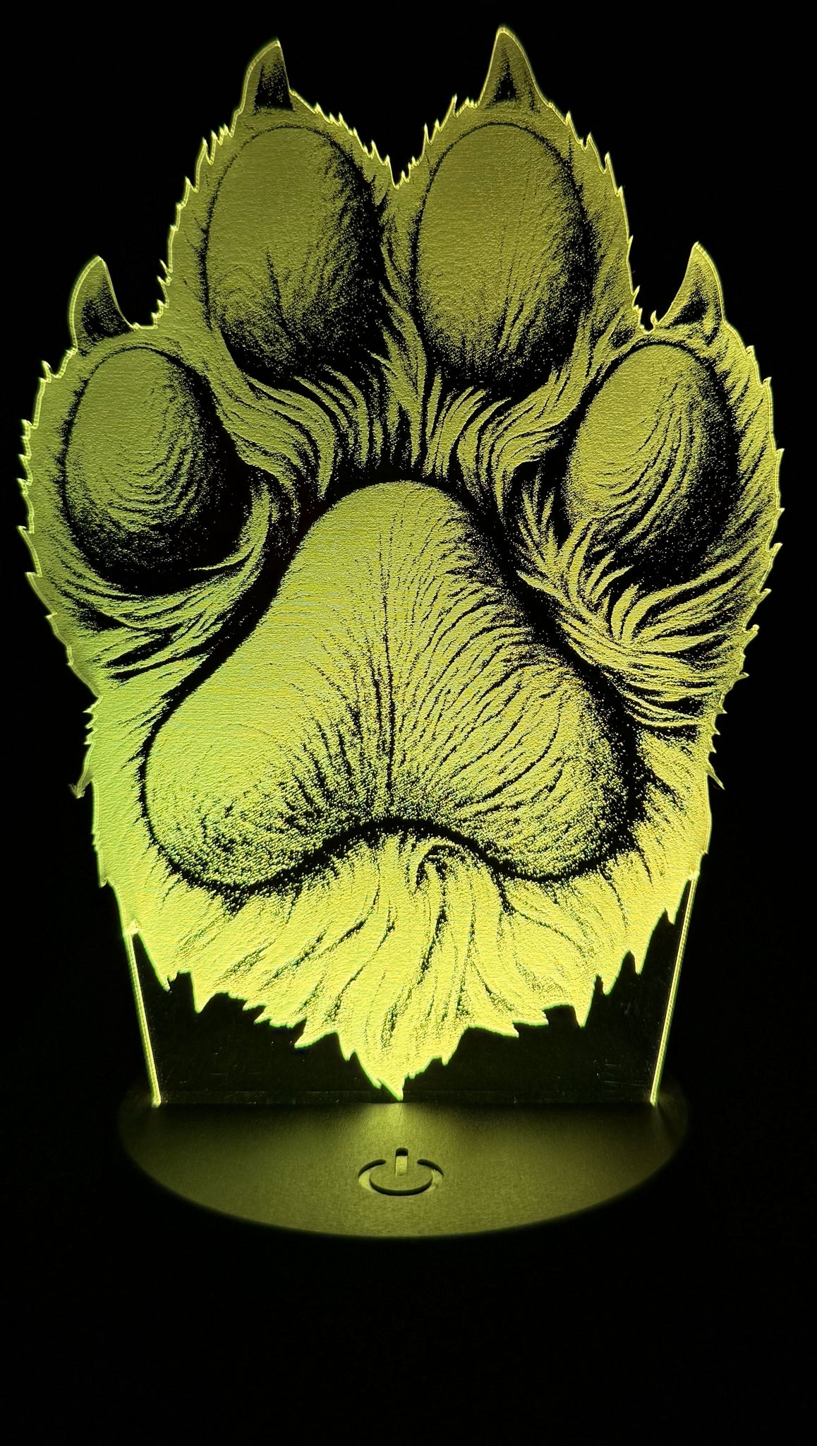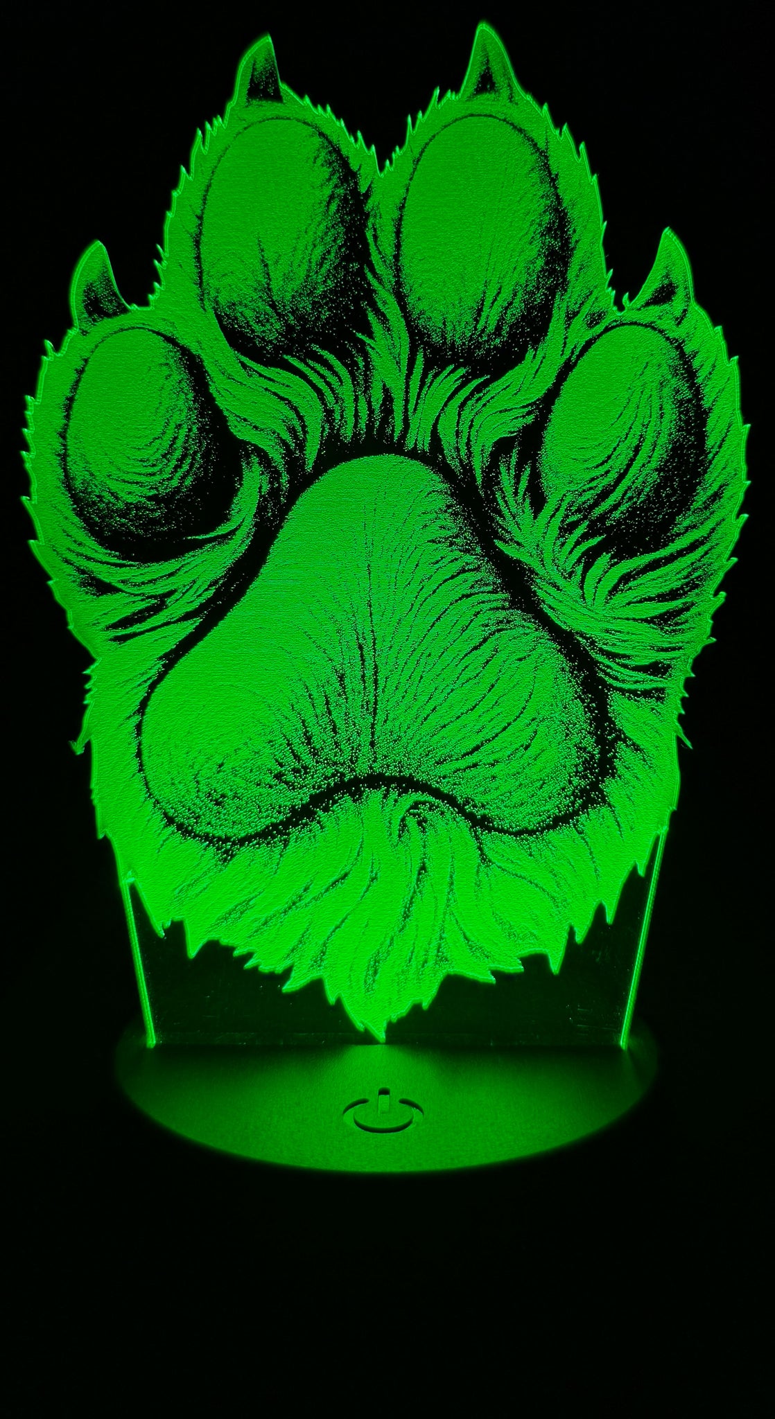 Honor the bond between human and pet with this beautifully etched edge-lit acrylic lamp featuring a lifelike paw print. Crafted with precision and illuminated by vibrant LED lighting, the design showcases fur texture and shading that evoke warmth, loyalty, and love. Whether it's a tribute to a beloved dog, a gift for a pet parent, or a cozy accent for your space, this glowing paw print brings heartfelt charm to any room.